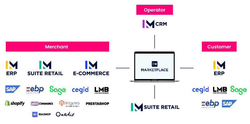 This symbiosis ensures efficient management of catalogue flows, product stock quantities, customer orders, logistics and even invoicing processes for the Merchant.